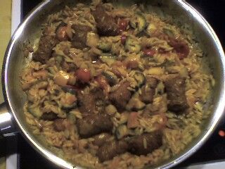 Mit Paprika, Zwiebeln, Tomaten, Reis und natürlich kleinen Bifteki. Kööööstlich!