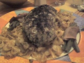 Ich hatte Lammrücken in Kräuterkruste auf einem Bett von Tomatennudeln. Köööööstlich!!!