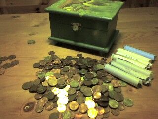 Einmal im Jahr wird die Spardose geleert, in der wir das Kleingeld (1 – 10 Cent) vom Einkaufen sammeln. Diesmal sind es 38 Euro.