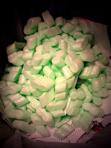 Als er mal wieder Morgens nicht pünktlich war, haben wir aus der Packerei einen Sack Flopack (ca. 500l) geholt, seinen Spind auf die Seite gelegt, den ganzen Sack reingeschüttet und den Spind wieder an seinen Platz gestellt. Dann war Verstecken und Warten angesagt, natürlich mit Fotoapperat.