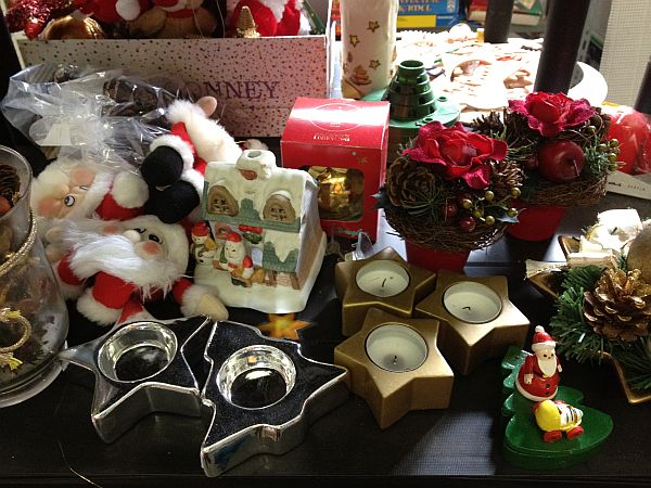 Nachdem die Geschäfte schon seit drei Wochen weihnachtlichen Süßkram verkaufen, haben die Kollegen vom Lager nachgelegt: ein großes Regal voll mit Weihnachtsdeko. Von künstlichen Weihnachtssternen über Kerzen, Nikoläuse, Lichterketten bis hin zu Tassen und Tellern mit Weihnachtsmotiven bieten sie alles an, was Herz und Auge erfreut.