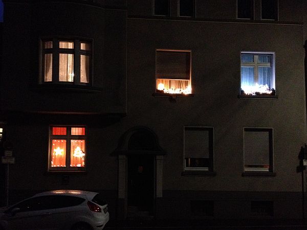 In der dunklen Jahreszeit und besonders vor Weihnachten liebe ich es, durch die Straßen zu gehen und die Lichtdeko in den Fenstern der Stadt zu sehen.