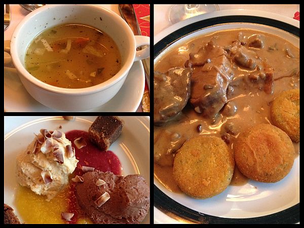 Gut, ich habe schon ein paar Unterschiede zu den Profis in der Gastronomie bemerkt. Die Vorsuppe war über den Tassenrand geschlabbert, keine einheitlichen Gläser auf dem Tisch und das Besteck war auch bunt zusammengewürfelt. Aber alles war mit Liebe zubereitet und wir haben uns sehr wohl gefühlt.