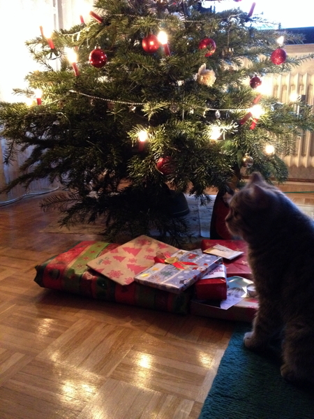 Nachdem wir zwei Jahre lang keinen Weihnachtsbaum hatten, weil wir den Katzen nicht so recht getraut haben, gab es dieses Mal endlich wieder einen Baum.