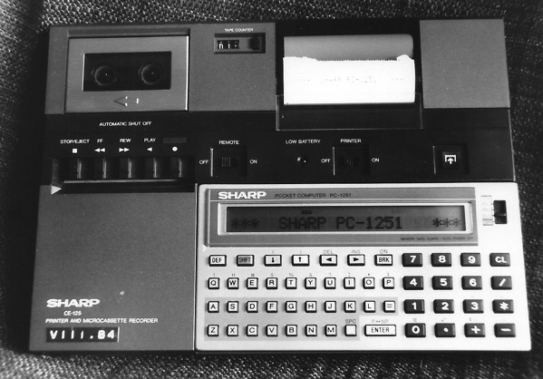 Meine Wahl fiel auf den Sharp PC-1251, ein sogenannter Pocket Computer, den ich mit der Drucker-Rekorder Einheit erweiterte.