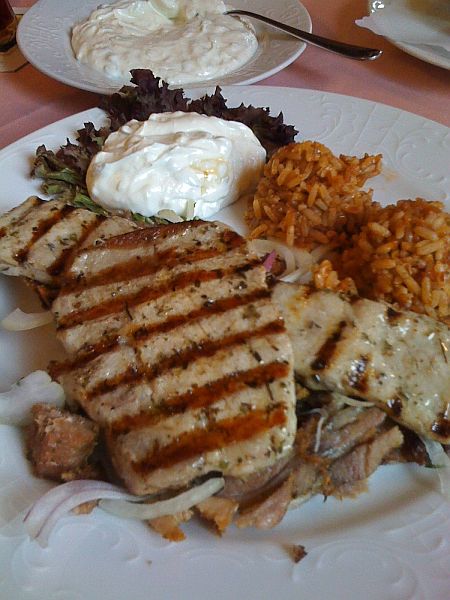 Zur Feier des Tages gehen wir bei unserem Lieblingsgriechen essen. Wie immer war es köstlich und reichlich.