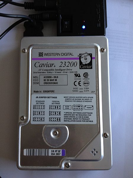 Gestern habe ich beim Stöbern im Keller u. a. dieses alte Schätzchen gefunden: eine Western Digital Caviar von 1998 mit 3,25 GB! Es war damals meine erste Festplatte mit einer Kapazität in dieser Größe.