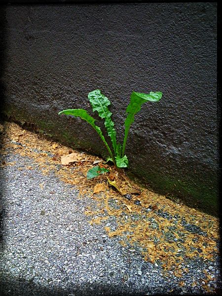 Auch wenn es nur ein einfacher Löwenzahn ist, ich freue mich immer, wenn irgendwo Grün durch den langweiligen grauen Asphalt bricht. Die Natur hat mehr Kraft, als so mancher glauben will!