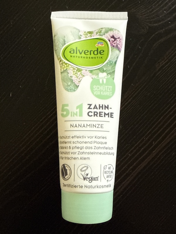 Fazit: joh, passt. Zwar nicht so stark im Geschmack wie die dentural Zahnpasta, sorgt sie aber ebenfalls für ein angenehmes und frisches Gefühl an der Knabberleiste. Die darf auch bleiben.
