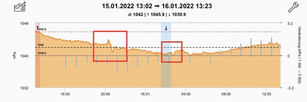 Druckwellen vom Tonga Vulkan, Screenshot aus myatmo