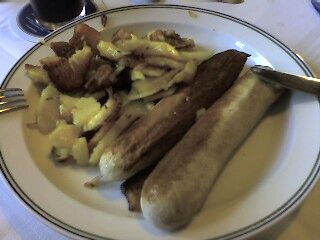 Die haben hier seltsames Essen: Nackte Wurst, eine Bratwurst ohne Pelle. Aber sehr lecker!