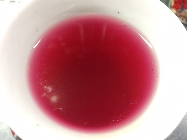 Quitsch rot ergoß sich der Doseninhalt in den Becher (ich hatte grün oder orange erwartet), ein künstlich süßer Duft kitzelte meine Nase.