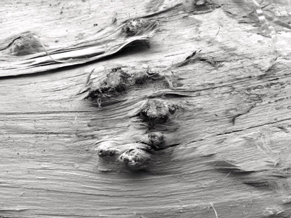 Ein Baumstamm, von der Rinde befreit, aber sonst noch unbehandelt.