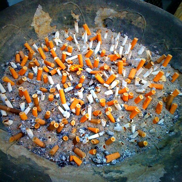 „Vom Aschenbecher? Wollen Sie etwa zählen, wieviel wir rauchen?“ Er kichert.