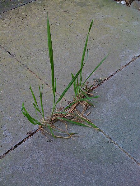 Wenn sich in der kleinsten Ritze Erde sammelt (und man nicht sauber macht), findet sich schnell eine Pflanze, die sich dort niederläßt.