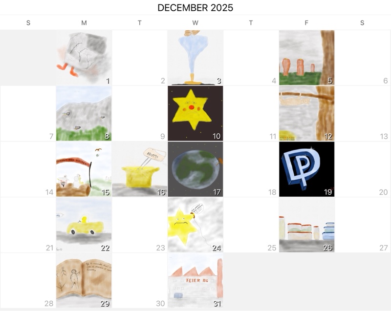 Malen im Dezember 31. Dezember 2025 / Keine Kommentare Kurz vor Monatsende noch fertig geworden. Malzember 2025 Zeichnen Vorheriger Beitrag 6 und mehr wundervolle Minuten Nächster Beitrag Neujahrsvorsätze Schreibe einen Kommentar Antwort abbrechenDeine E-Mail-Adresse wird nicht veröffentlicht. Erforderliche Felder sind mit * markiertKommentar * Name * E-Mail-Adresse * Website Meinen Namen, meine E-Mail-Adresse und meine Website in diesem Browser für die nächste Kommentierung speichern.