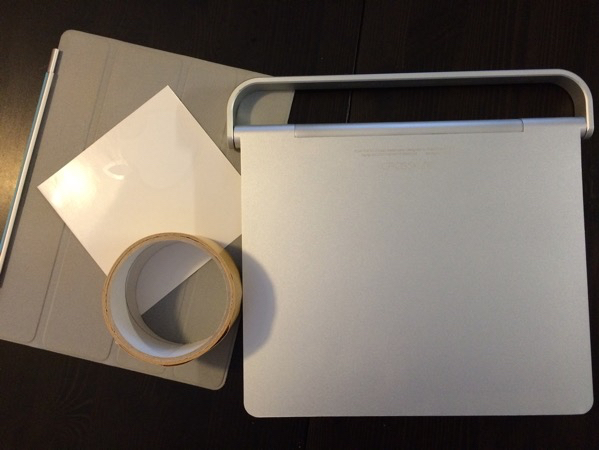 Da das Alucover nicht die Einschaltfunktion des Smartcovers bietet, habe ich zuerst die oberen Gummiwinkel entfernt. Die oberste Leiste des Apple Smartcovers habe ich abgeschnitten und mit doppelseitigem Klebeband auf diese Stelle geklebt.