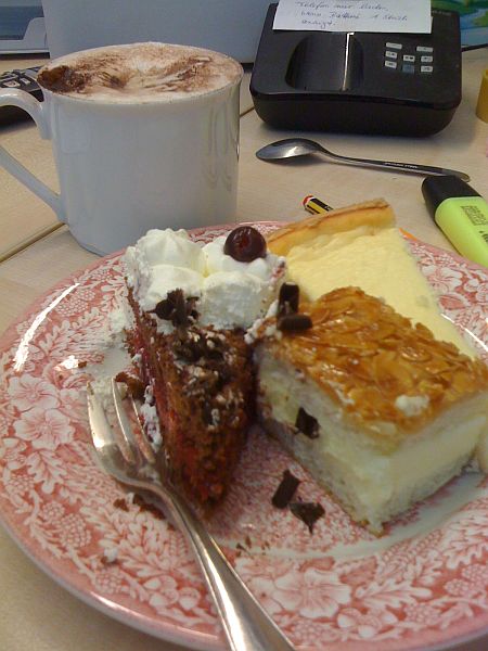 Ein Kollege hat verspäteten Geburtstagskuchen ausgegeben. Also mal wieder Schwerstarbeit für uns.