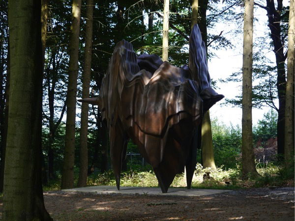 Wie ein Bison steht eine mächtige Skulptur zwischen den Bäumen und zieht mich magisch an. Von jeder Seite sieht sie anders aus, läßt sich optisch nicht festhalten.