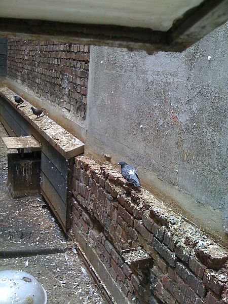 Ein kleiner Hinterhof, zwischen Stadthäusern, in der zweiten Etage. Von Tauben erobert, mit leicht penetrantem Geruch.
