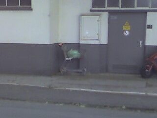 Letztes Jahr habe ich (noch mit dem Treo) einen Einkaufswagen über mehrere Tage fotografiert, der auf dem Bürgersteig vor der Firma rumstand bzw. -lag.