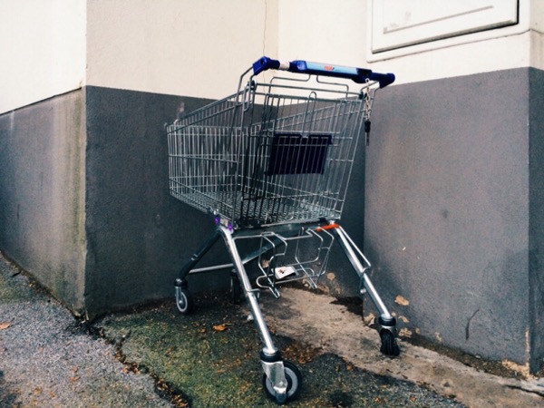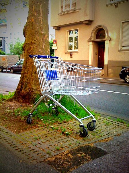 Ich hätte es nie erwartet: heute morgen stand wieder der einsame Einkaufswagen auf dem Bürgersteig in der Nähe der Firma.