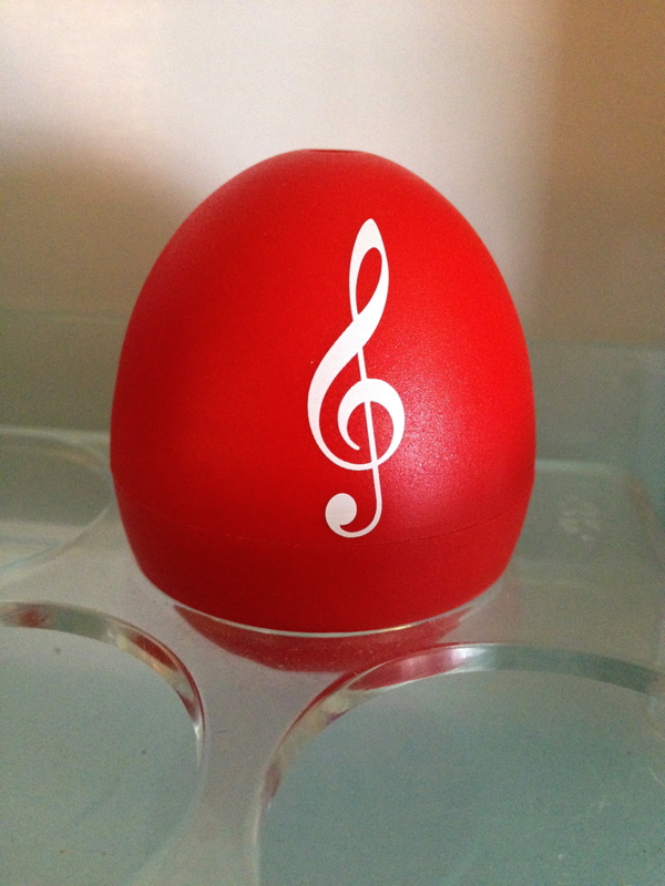 In leuchtendem Rot und mit freundlichem Notenschlüssel hat Amadeus seinen Platz im Kühlschrank gefunden.
