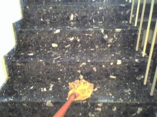 Dies ist ein ordentliches Haus und da wird jede Woche und besonders vor Feiertage geputzt. Obwohl, bei dem Steinmuster sieht man Dreck kaum. 😉