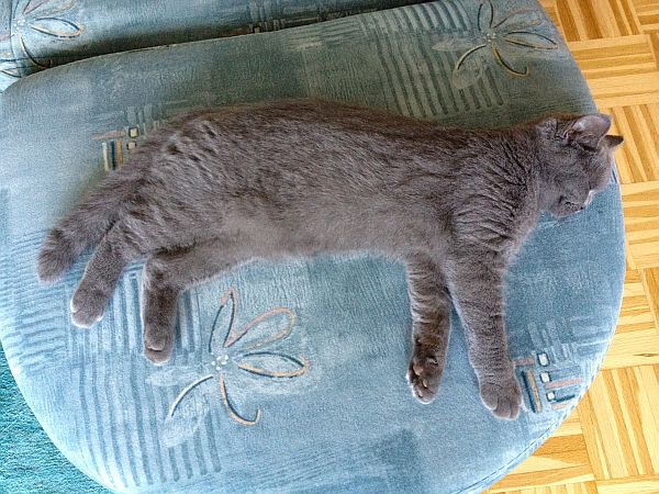 Bei diesem Wetter liegen die Katzen tagsüber nur schlaff in der Gegend rum. Besonders Paulinchen scheint es zuviel zu sein.